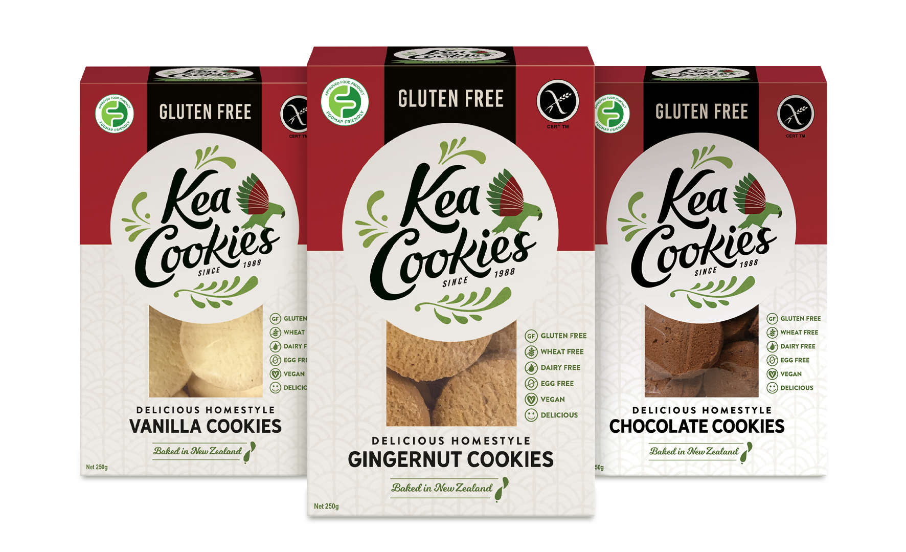 Kea Cookies was born out of love and necessity in 1988, when the original owner wanted to create cookies that were safe and delicious for his coeliac children. This personal motivation laid the foundation for a brand that cares deeply about the needs of people with food sensitivities. In 2014, Andrew and Nicole Hardie, together with Nicole’s father, John Xanthopol, purchased Kea Cookies and have run it as a family business, continuing to grow the brand while staying true to its core values.