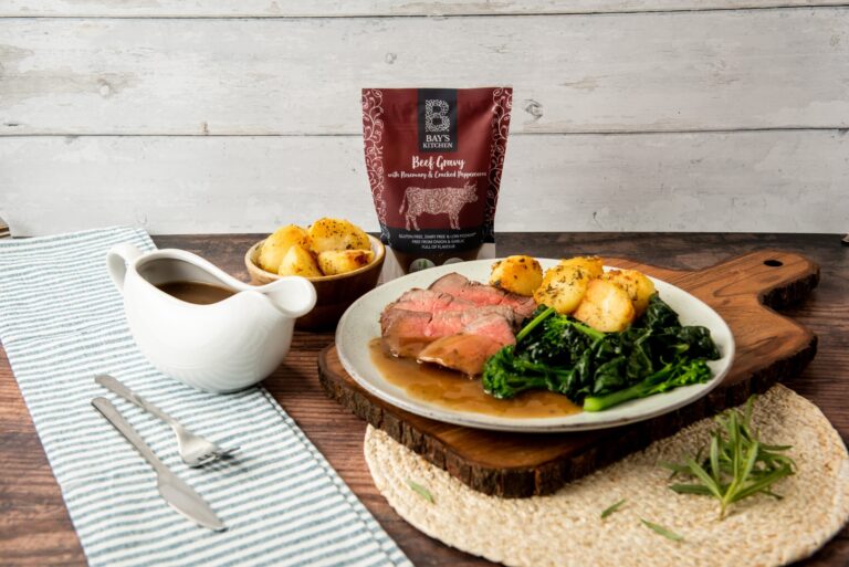 Low FODMAP Roast Beef with Crispy Rosemary Roast Potatoes & Green Veg